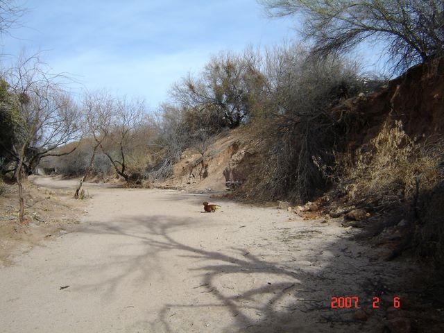 A riverbed close by, apparently it occasionally overflows into the RV park, soon hopefully..