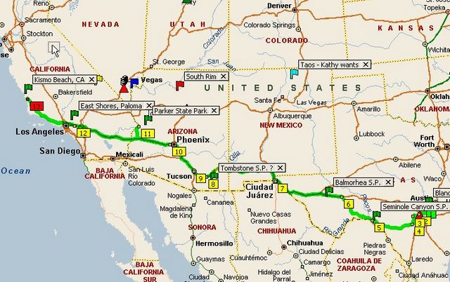 Chap 7 - San antonio, the Alamo, & the River Walk, our 1st canyon, a mini dam in Parker, on to LA, Hollywood and finally the Pacific ocean and Pismo beach on Hwy #1